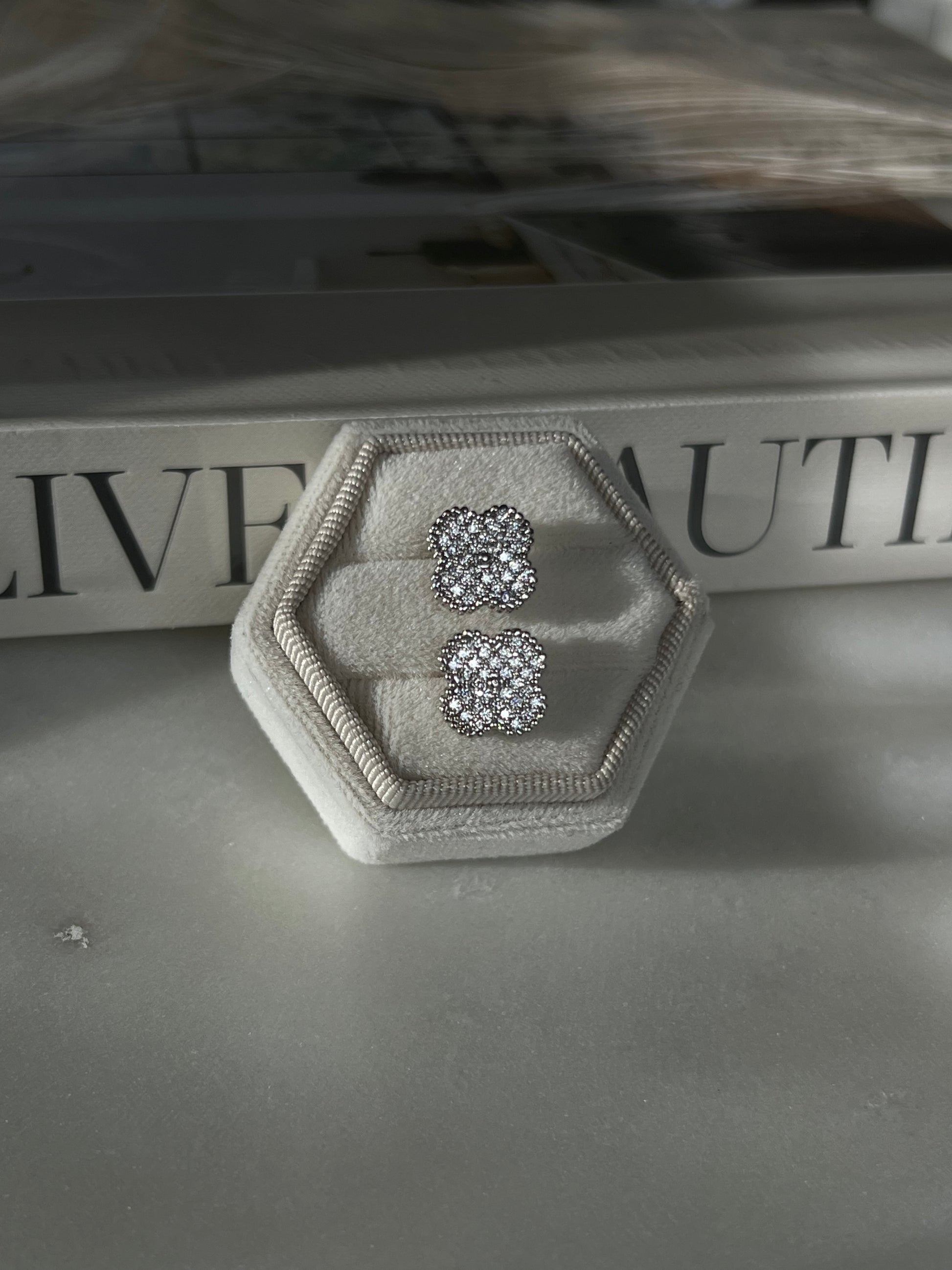 Stick örhängen med studs, unika exklusiva örhängen med skimrande Cubic Zirconia stenar som finns både i guld och silver.